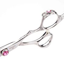 The Dynasty Dazzle is an extremely cute, economical shear that features a carved bow and ribbon on the handle, with some beautiful “diamond” bling.